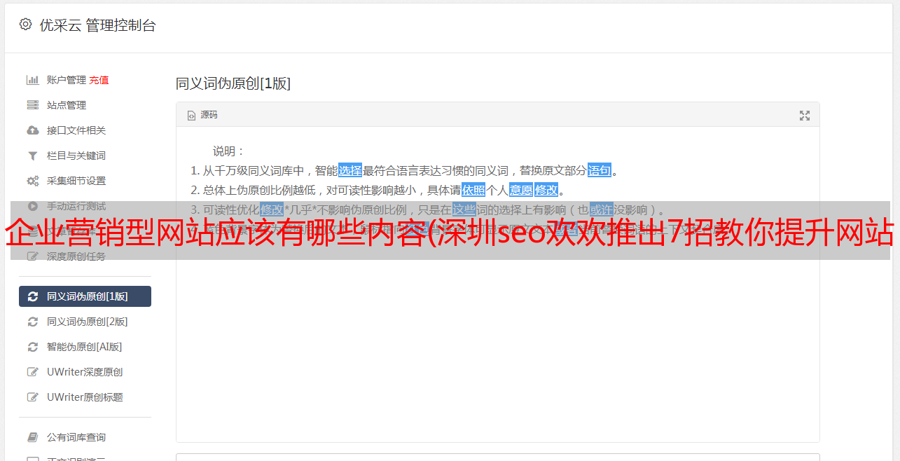 优采云 发布时间: 2022-02-13 17:22企业营销型网站应该有哪些内容(深圳seo欢欢推出7招教你提升网站流量!(图))