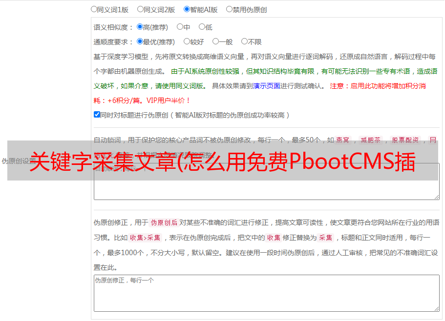 这个Pbootcms插件工具也配置了很多SEO功能,通过采集伪原创软件发布的时候还可以提升很多SEO优化,比如: