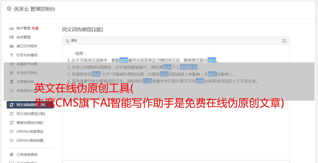 英文在线伪原创工具( 朱鸾CMS旗下AI智能写作助手是免费在线伪原创文章)