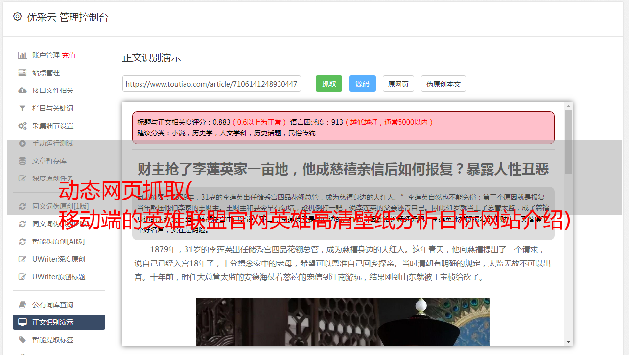 移动端的英雄联盟官网英雄高清壁纸分析目标网站介绍)