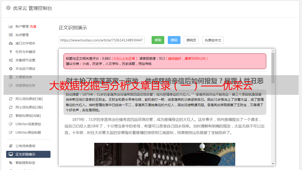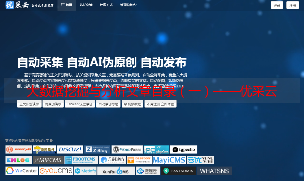 优采云 发布时间: 2021-05-03 01:26大数据挖掘与分析文章目录(一)——优采云