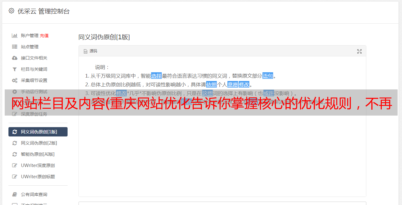 优采云 发布时间: 2022-02-15 15:01网站栏目及内容(重庆网站优化告诉你掌握核心的优化规则,不再畏惧搜索引擎)