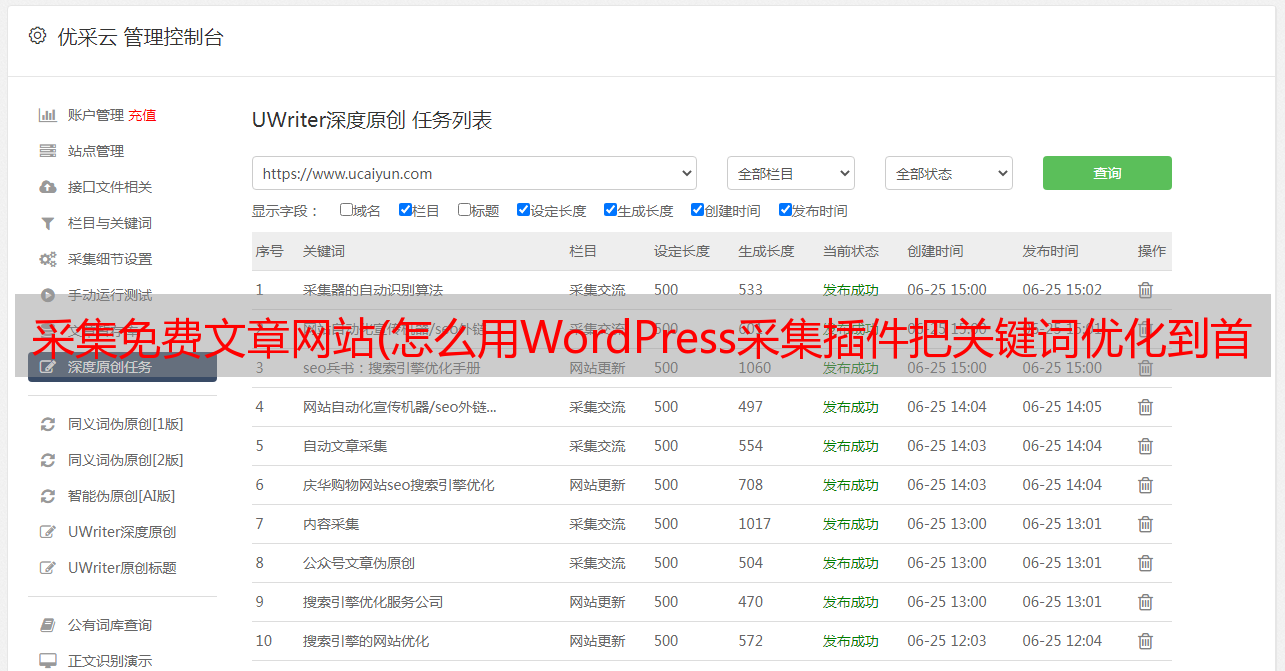 优采云 发布时间: 2022-02-17 04:21采集免费文章网站(怎么用WordPress采集插件把关键词优化到首页让网站能快速收录