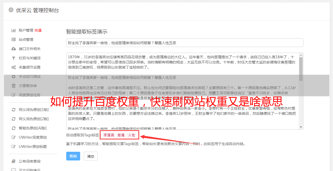本文重点讨论网站重量的问题。 网站权重是SEO优化的非常重要的指标,甚至是公司KPI的重要组成部分,但是作为专业的SEO人员,我们必须真正了解百度的权重是什么意思,当然,我们还需要知道如何有效增加网站的权重。至于网站的快速加权,如果它是常规的网站,建议不要使用快速排名操作,使用白帽SEO可以使网站更进一步。