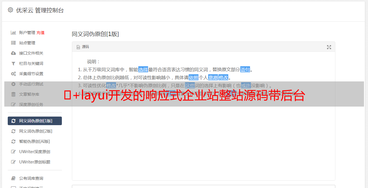 优采云 发布时间: 2021-05-03 19:10+layui开发的响应式企业站整站源码带后台