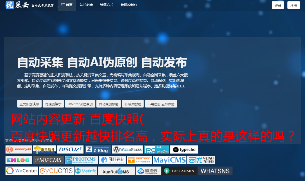网站内容更新 百度快照( 百度快照更新越快排名高,实际上真的是这样的吗? )