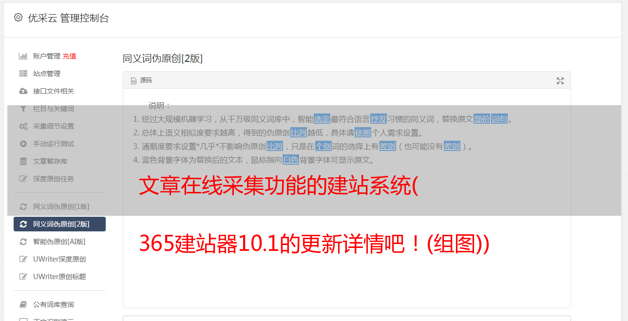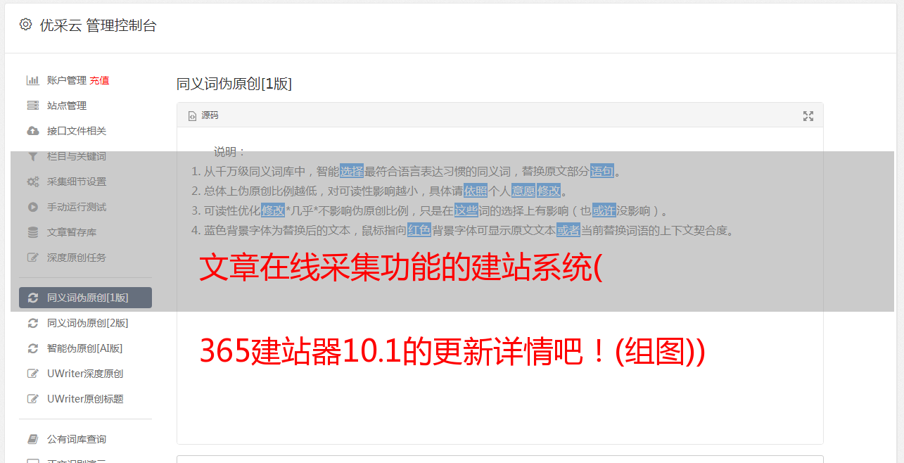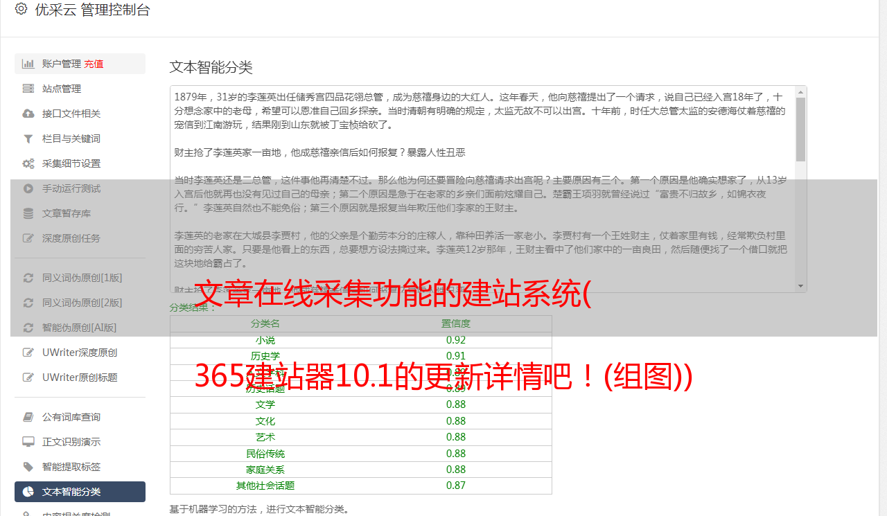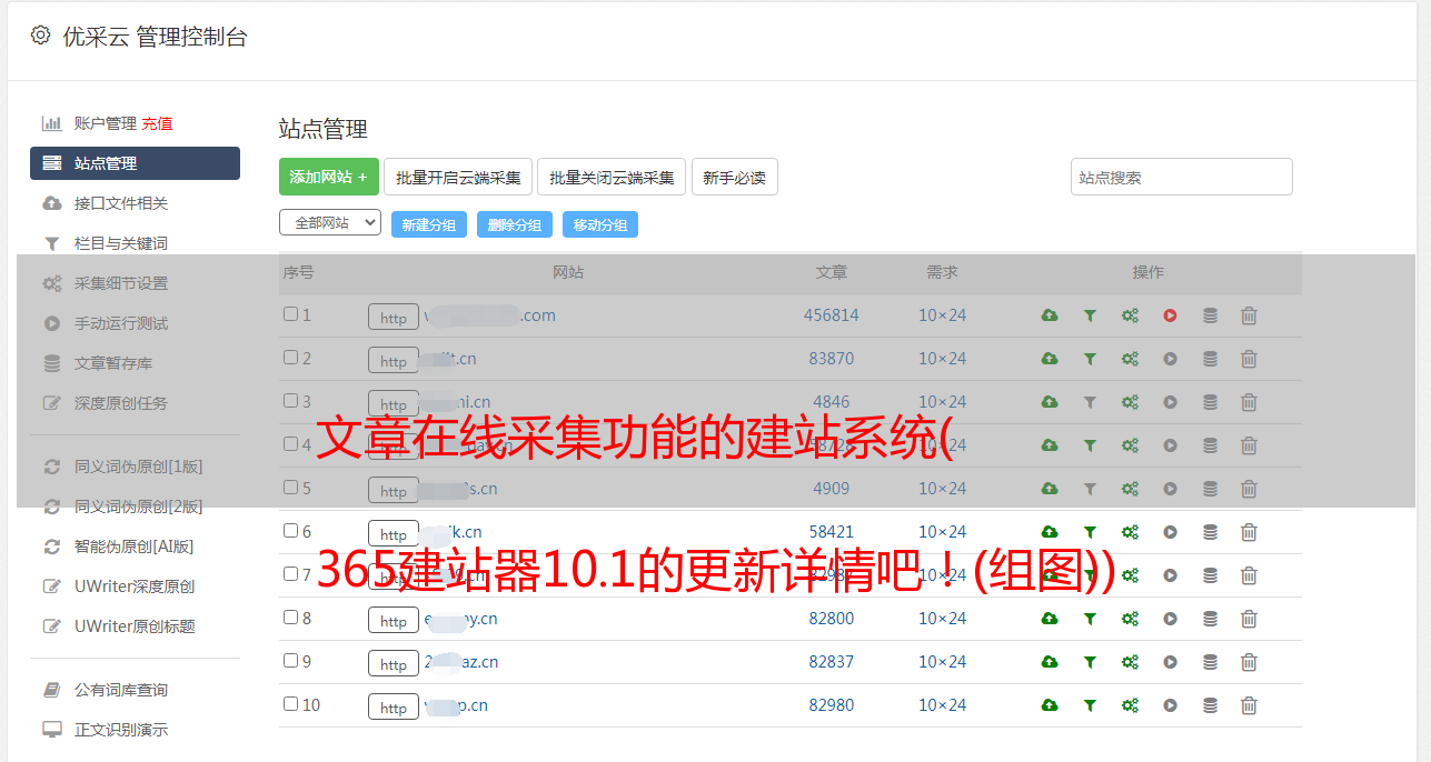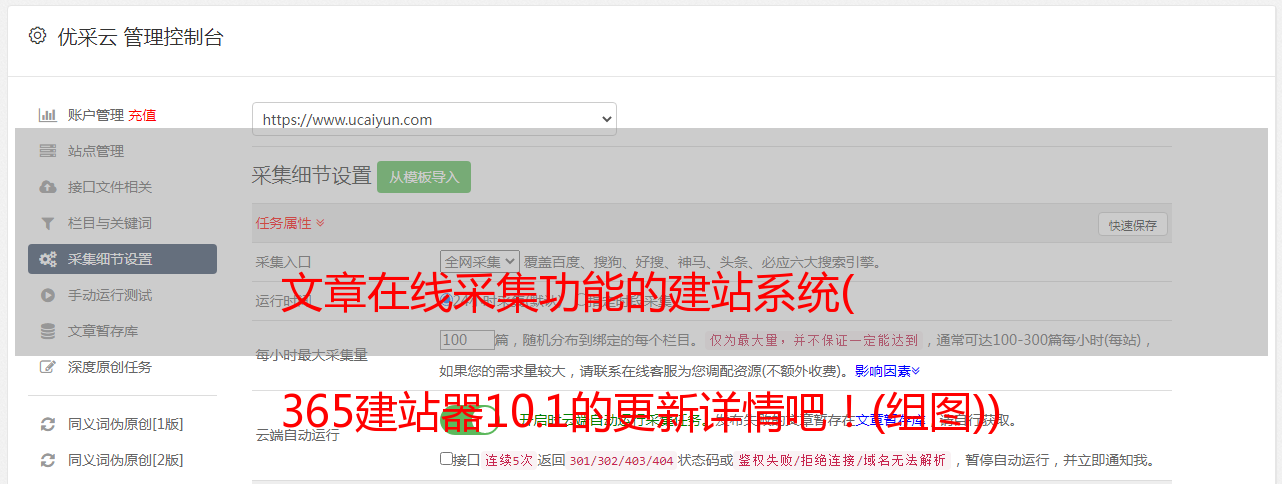 文章在线采集功能的建站系统( 365建站器10.1的更新详情吧!(组图))