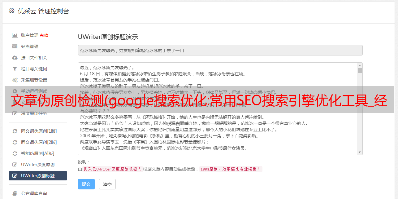 优采云 发布时间: 2022-02-18 16:25文章伪原创检测(google搜索优化:常用SEO搜索引擎优化工具_经验分享SEO)