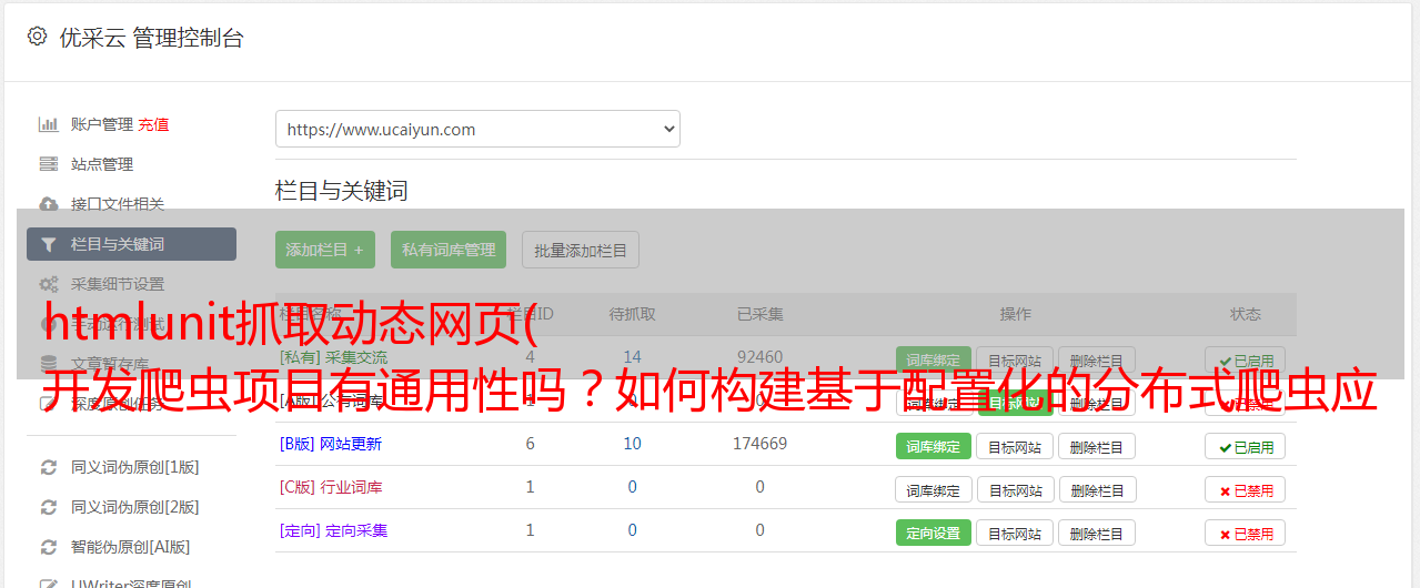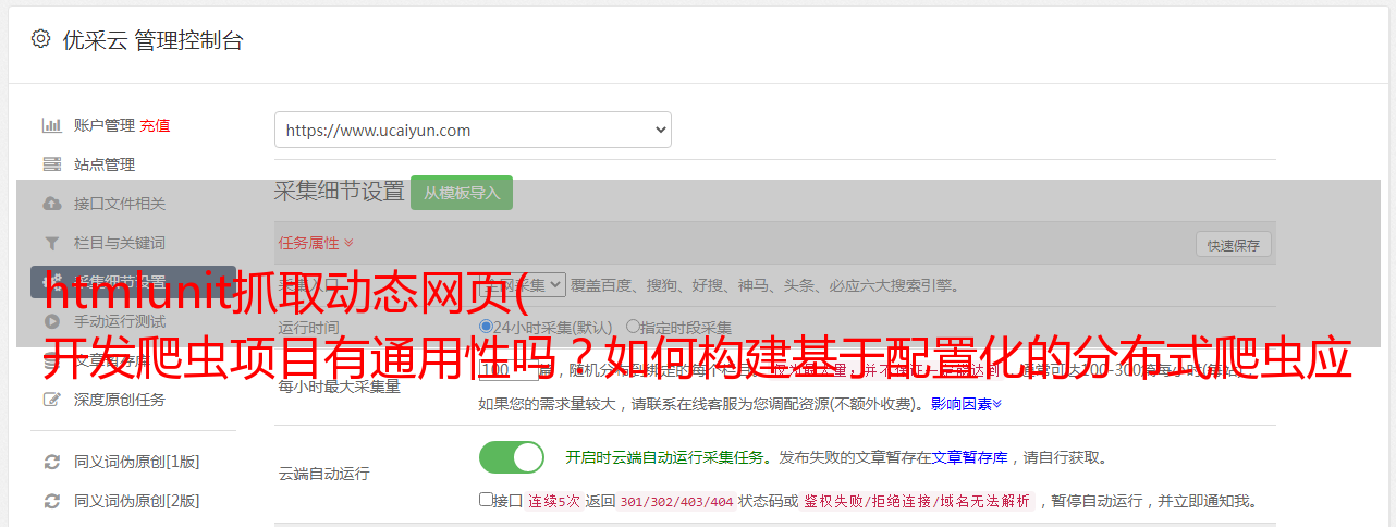 管理监控是一个系统,即配置可以管理,运行可以实时监控。当系统正常运行时,可以更改爬虫的配置。一旦实时监控爬虫出现异常,可以实时修正配置进行干预。一切都可以通过UI界面进行操作。