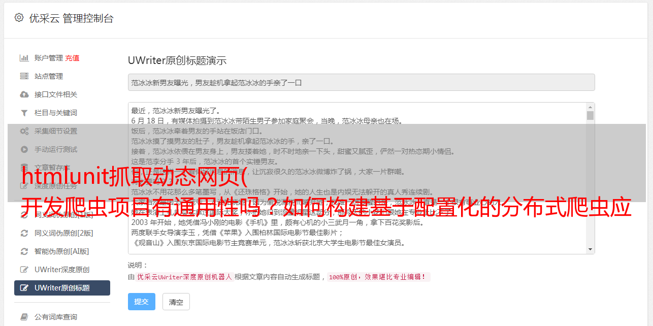 前提当然是每个业务的处理都不一样,包括提取页面属性、文本提取、图片获取,甚至与当前系统对接的功能。
