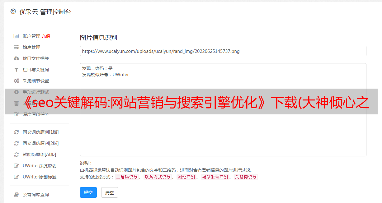 优采云 发布时间: 2022-02-19 05:12《seo关键解码:网站营销与搜索引擎优化》下载(大神倾心之作,超强破解永久免费,如果你有想要找寻的资源)