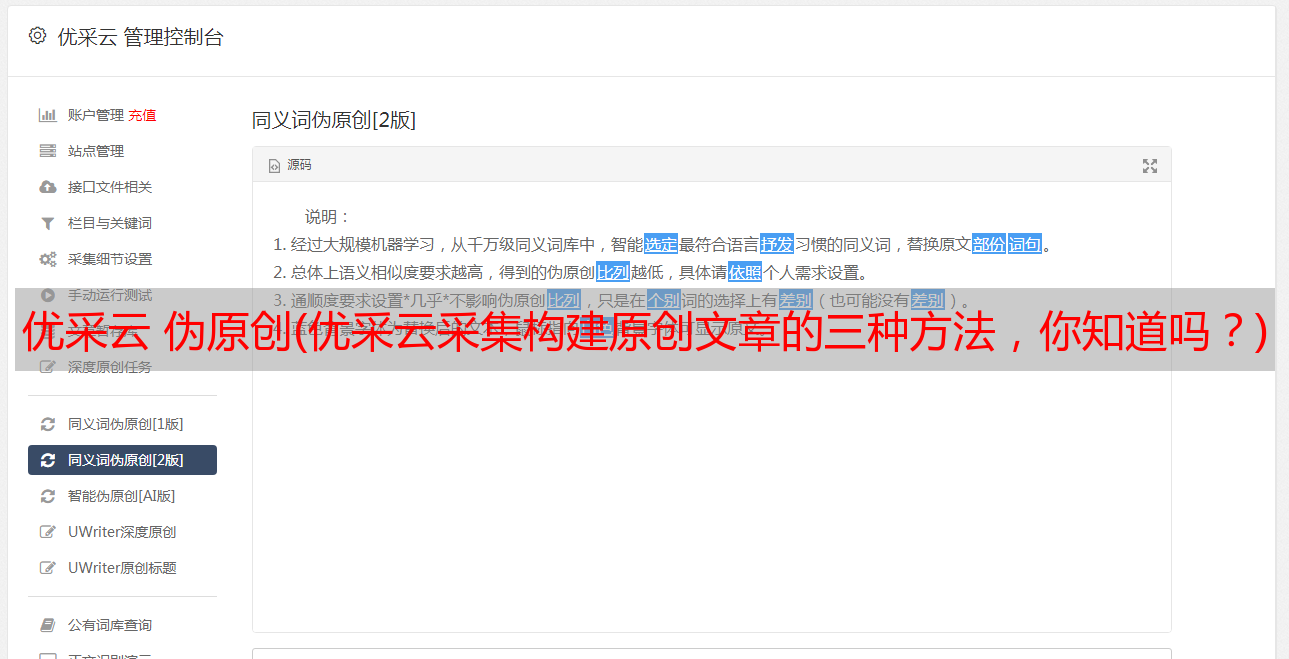 此外,伪原创大部分都被同义词和同义词所取代。基本上,市场上没有 AI伪原创。如果确实存在,那么直接给关键词,剩下的可以自己写。市面上大部分的伪原创提供者都替换了同义词和同义词,所以最好不要这样做。
