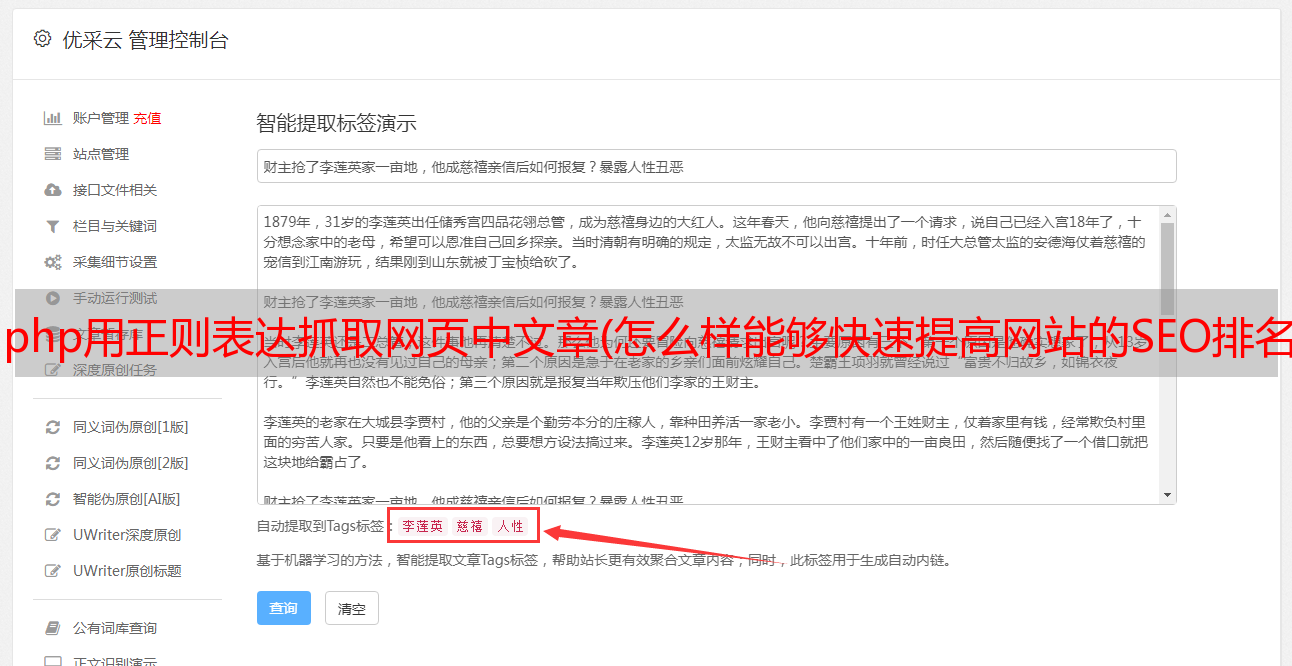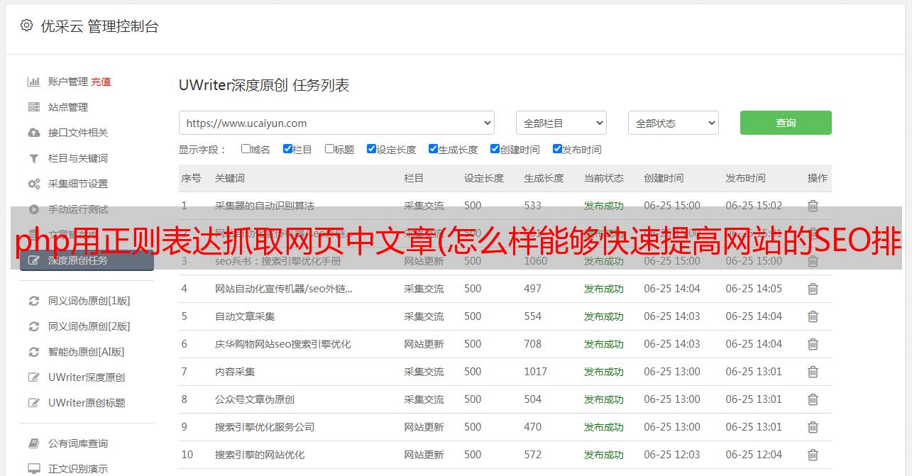 优采云 发布时间: 2022-02-19 21:11php用正则表达抓取网页中文章(怎么样能够快速提高网站的SEO排名呢?(图))