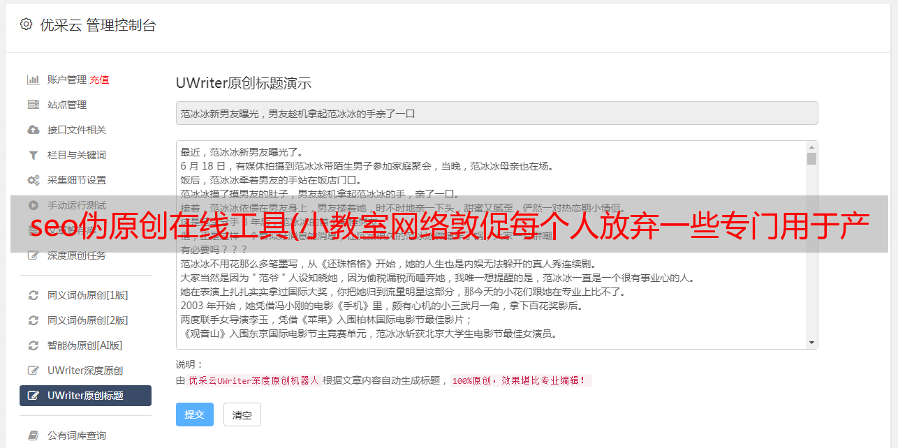 seo伪原创在线工具(小教室网络敦促每个人放弃一些专门用于产生互联网垃圾的伪原创工具)