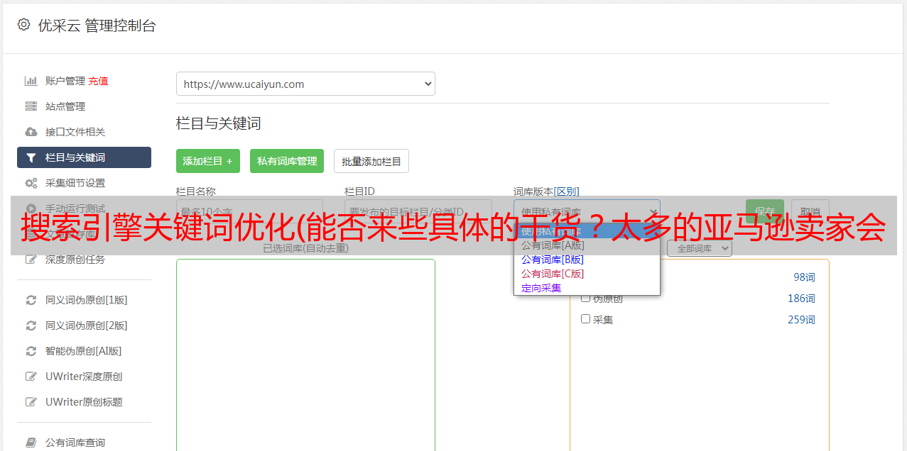 优采云 发布时间: 2022-02-20 14:05搜索引擎关键词优化(能否来些具体的干货?太多的亚马逊卖家会纠结)