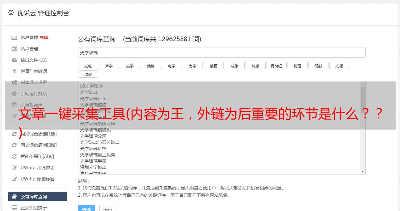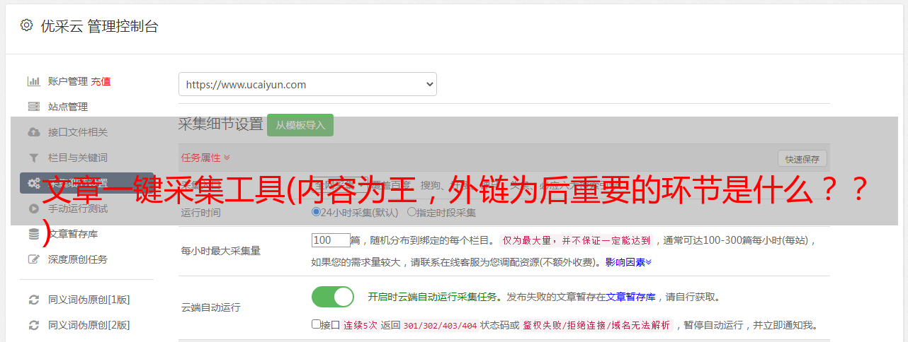 优采云 发布时间: 2022-02-21 11:23文章一键采集工具(内容为王,外链为后重要的环节是什么??