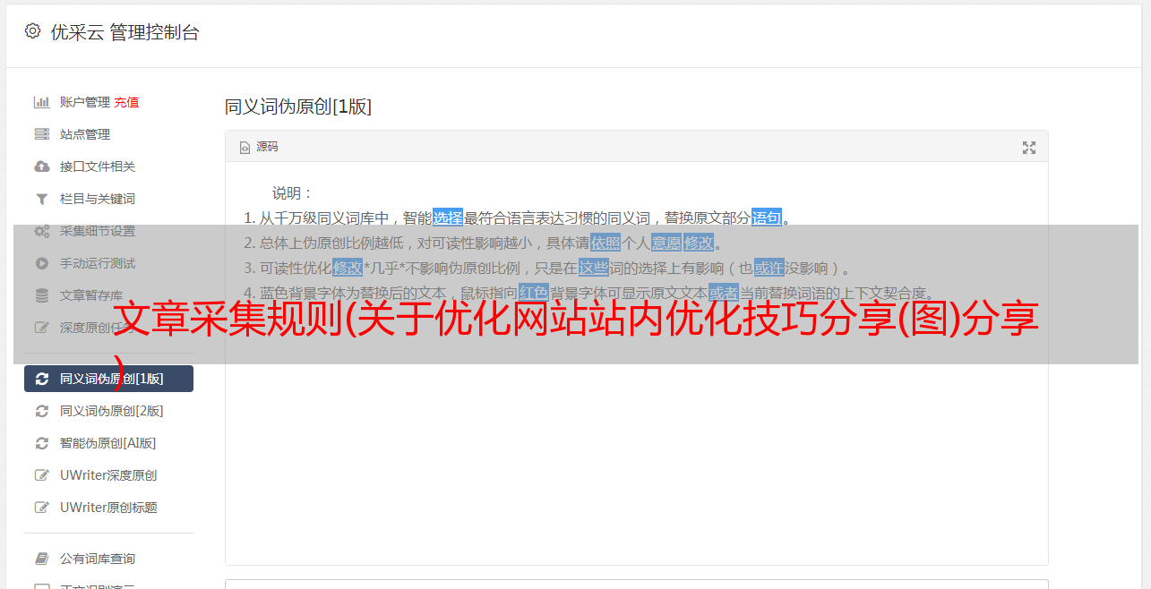 优采云 发布时间: 2022-02-21 18:10文章采集规则(关于优化网站站内优化技巧分享(图)分享