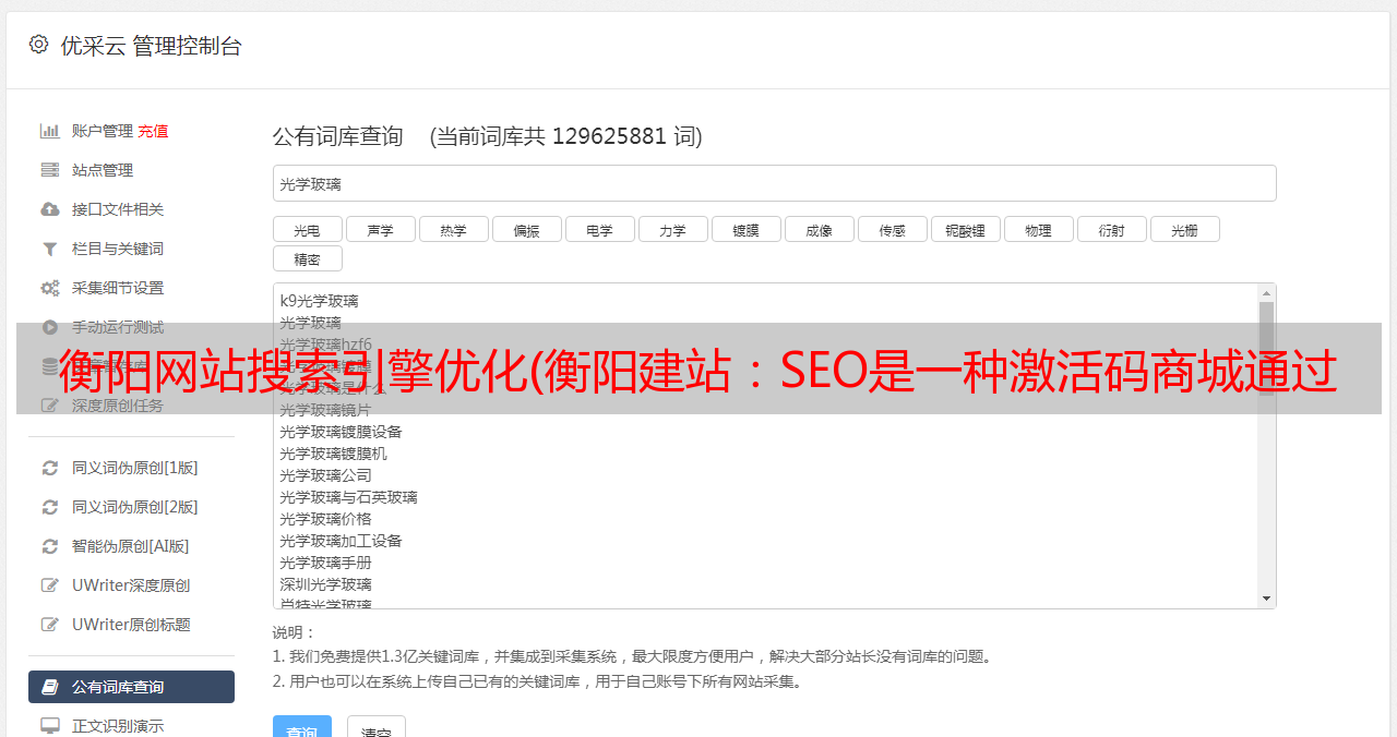 优采云 发布时间: 2022-02-21 19:07衡阳网站搜索引擎优化(衡阳建站:SEO是一种激活码商城通过分析搜索引擎的排名规律)