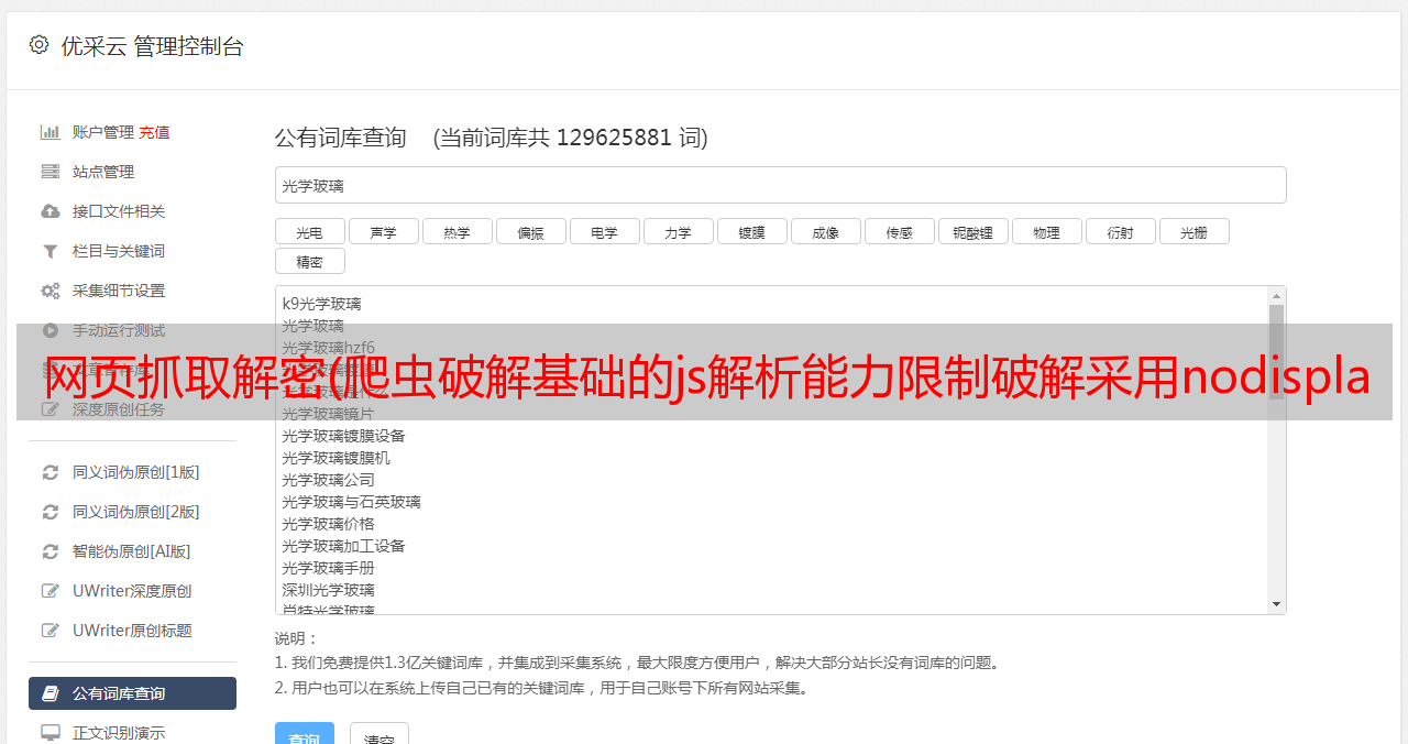 优采云 发布时间: 2022-02-22 07:15网页抓取解密(爬虫破解基础的js解析能力限制破解采用nodisplay来随机化)