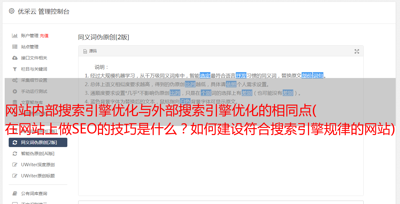 优采云 发布时间: 2022-02-22 13:06网站内部搜索引擎优化与外部搜索引擎优化的相同点(
