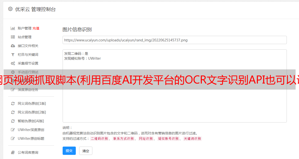 优采云 发布时间: 2022-02-22 13:22网页视频抓取脚本(利用百度AI开发平台的OCR文字识别API也可以识别
