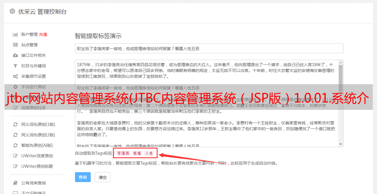 优采云 发布时间: 2022-02-23 02:21jtbc网站内容管理系统(JTBC内容管理系统(JSP版)1.0.01.系统介绍1.1)
