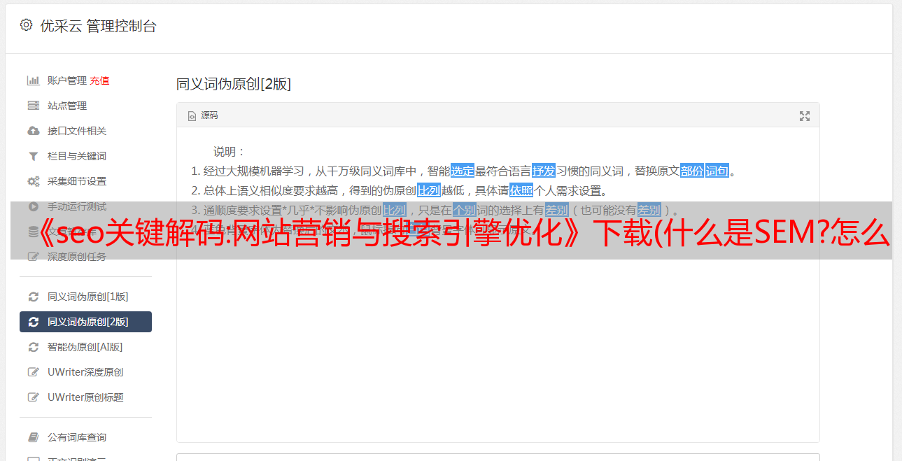 优采云 发布时间: 2022-02-23 04:06《seo关键解码:网站营销与搜索引擎优化》下载(什么是SEM?怎么做?SEM该怎么入手?这三个问题