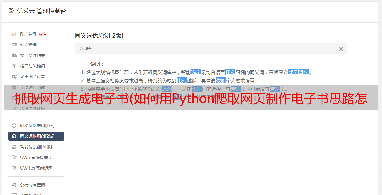 优采云 发布时间: 2022-02-23 16:13抓取网页生成电子书(如何用Python爬取网页制作电子书思路怎么抓取数据?)