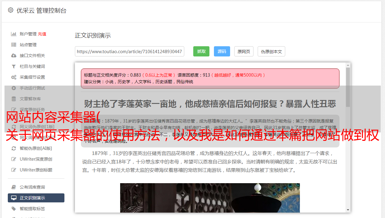 关于网页采集器的使用方法,以及我是如何通过本篇把网站做到权五的