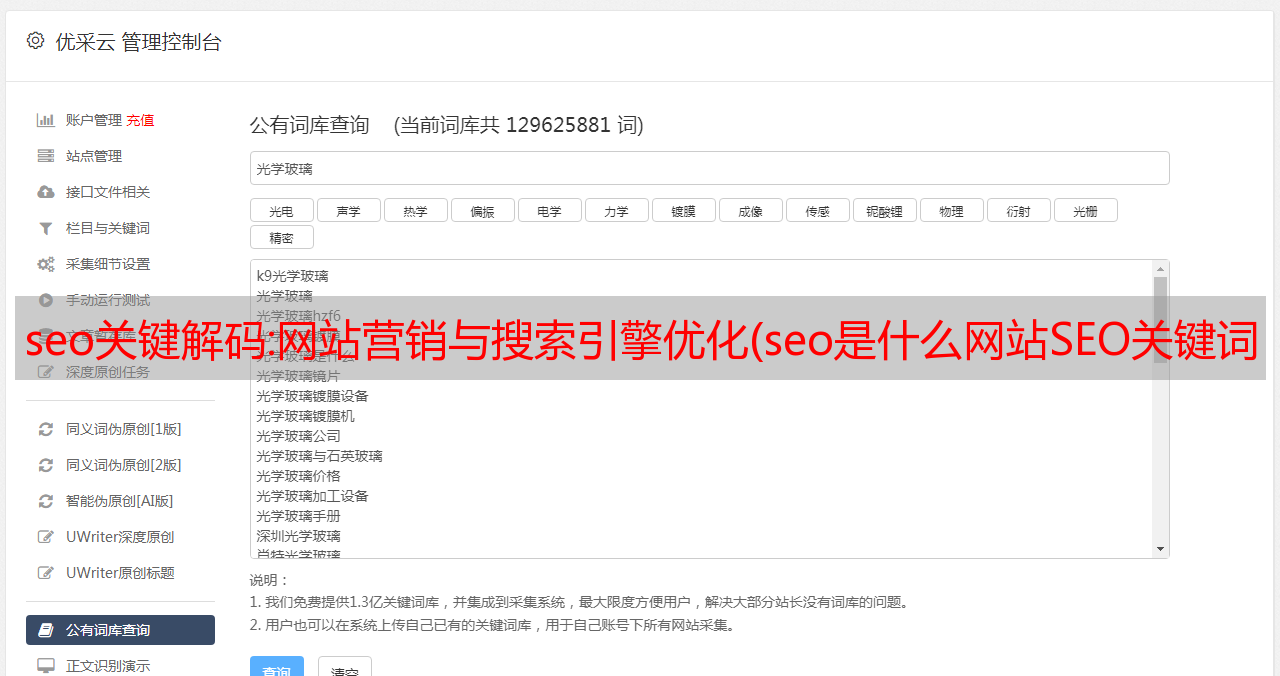 优采云 发布时间: 2022-02-24 03:05seo关键解码:网站营销与搜索引擎优化(seo是什么网站SEO关键词排名优化推广:1、百度SEO