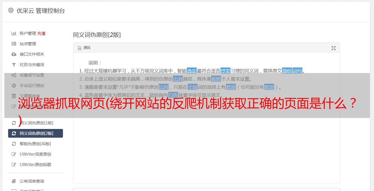 优采云 发布时间: 2022-02-24 13:25浏览器抓取网页(绕开网站的反爬机制获取正确的页面是什么?