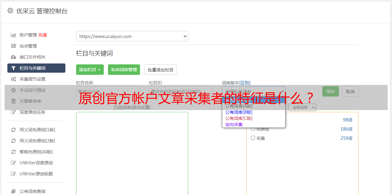 您可以分批粘贴关键字进行搜索,选择内容采集的日期,可以伪原创标题和内容,并确定文章是否为原创,并支持将一篇文章分发到网站上