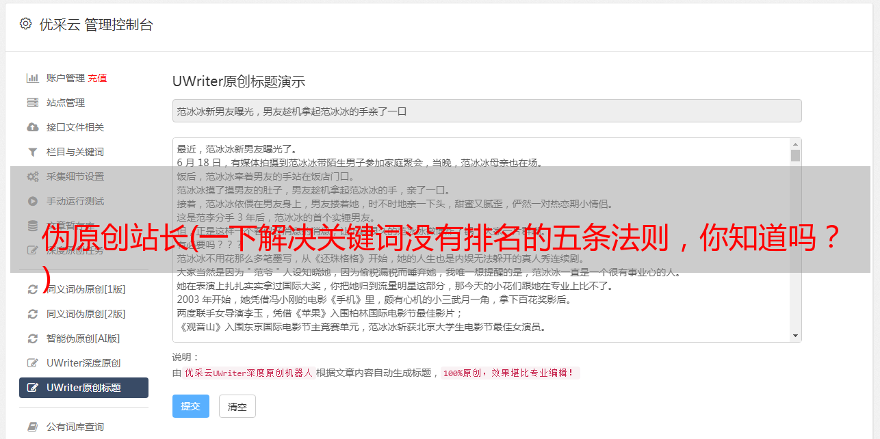 伪原创站长(一下解决关键词没有排名的五条法则,你知道吗? )