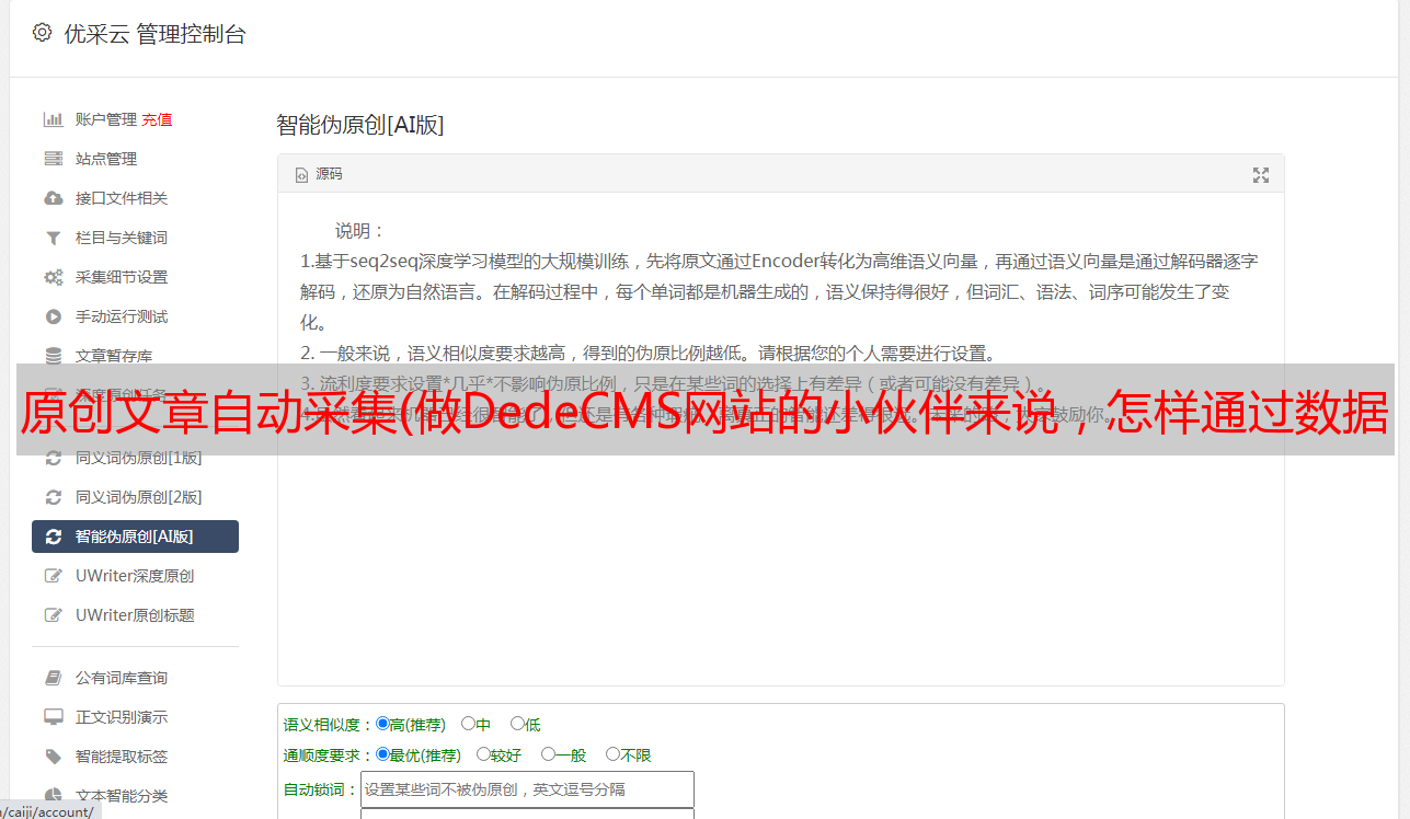 优采云 发布时间: 2022-02-25 04:01原创文章自动采集(做DedeCMS网站的小伙伴来说,怎样通过数据分析提升网站优化