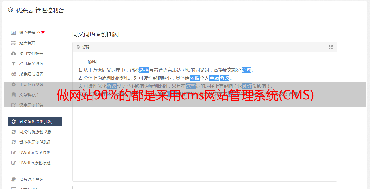 优采云 发布时间: 2021-05-05 18:10做网站90%的都是采用cms网站管理系统(CMS)