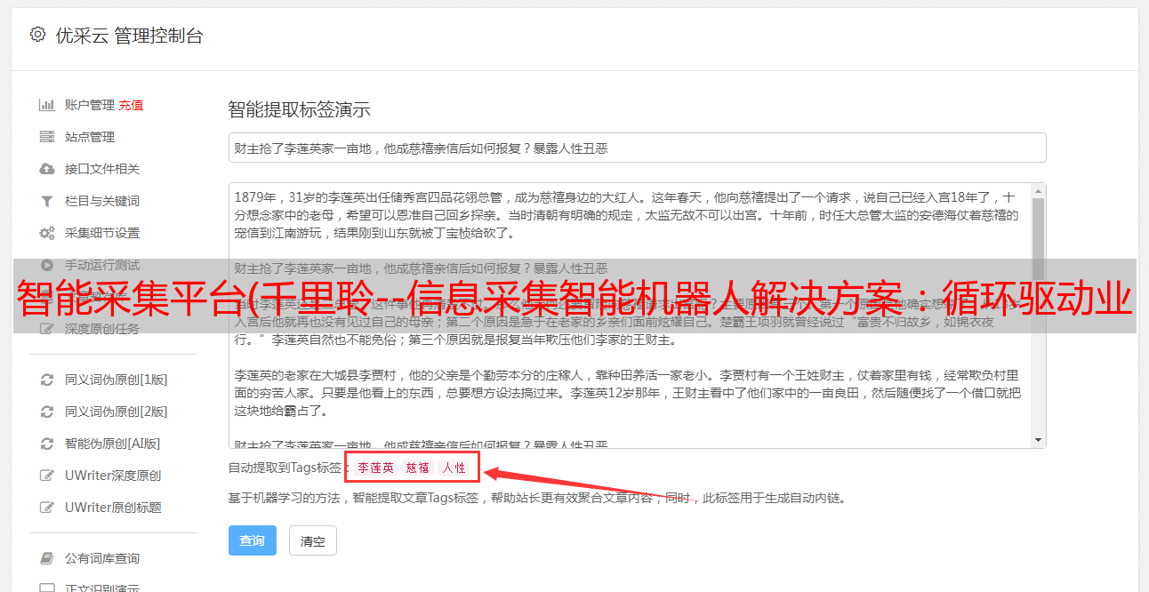 优采云 发布时间: 2022-02-25 12:10智能采集平台(千里聆--信息采集智能机器人解决方案:循环驱动业务前行