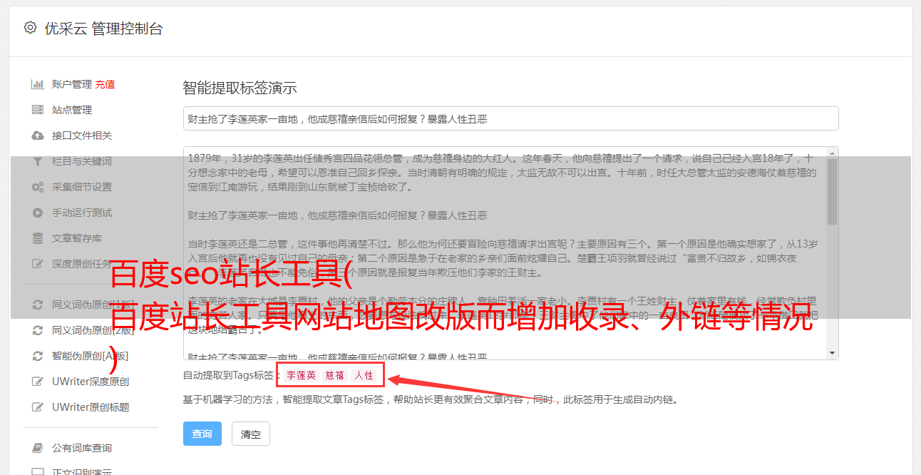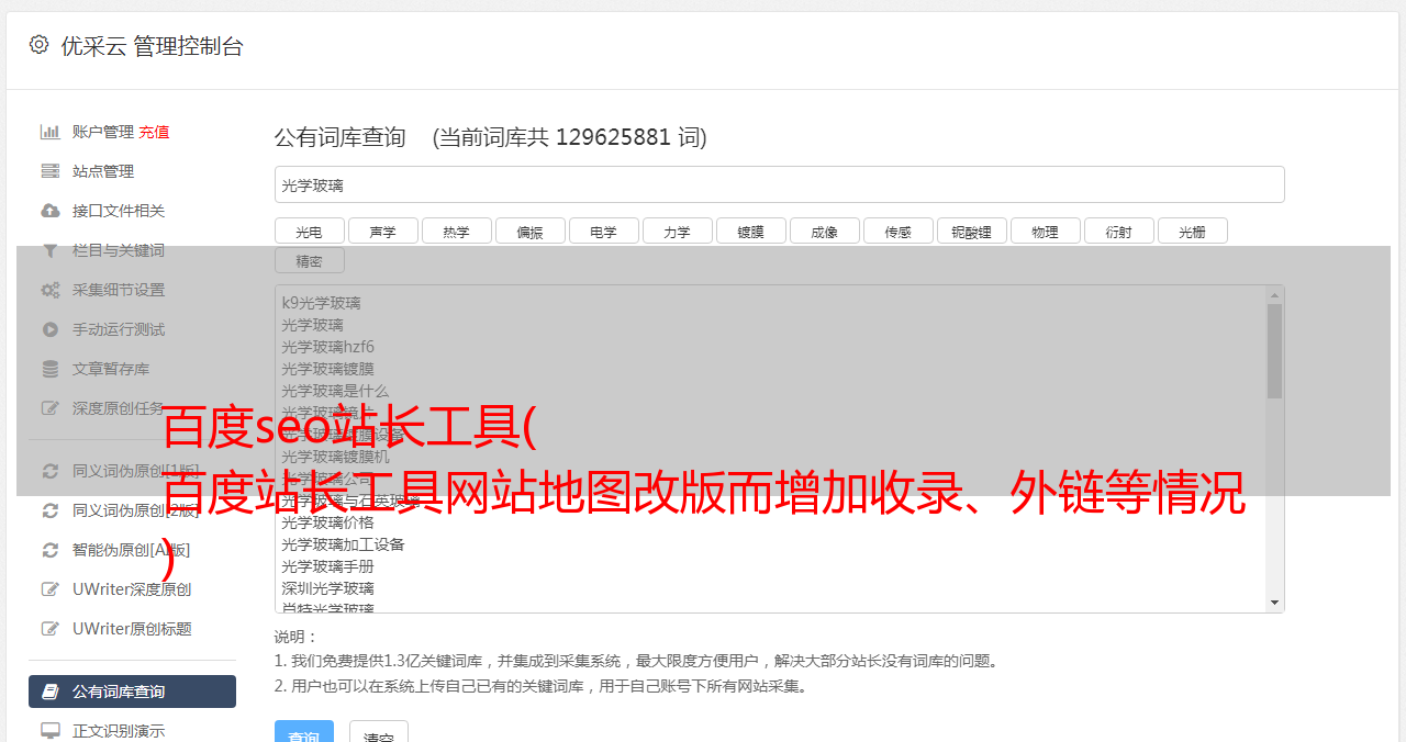 优采云 发布时间: 2022-02-25 20:09百度seo站长工具(