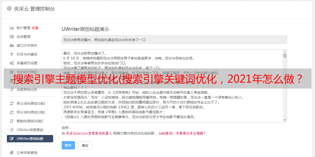 优采云 发布时间: 2022-02-26 13:08搜索引擎主题模型优化(搜索引擎关键词优化,2021年怎么做?【我是钱】)
