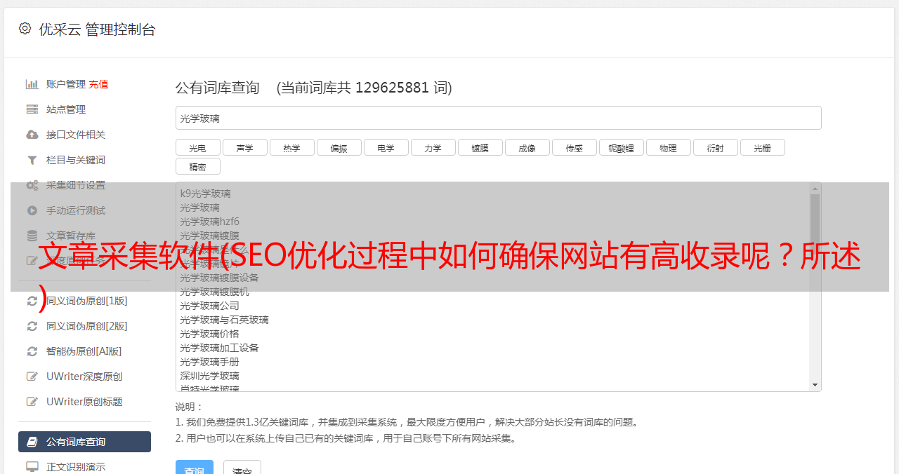 优采云 发布时间: 2022-02-26 20:14文章采集软件(SEO优化过程中如何确保网站有高收录呢?所述