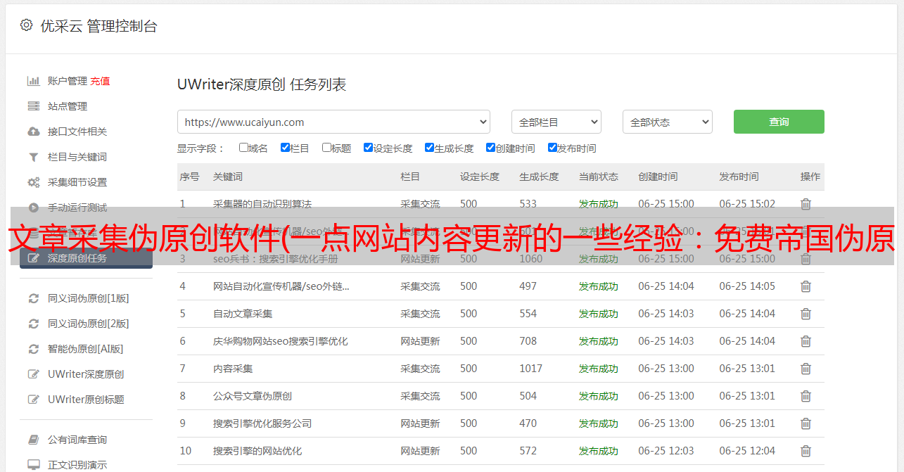 优采云 发布时间: 2022-02-27 04:15文章采集伪原创软件(一点网站内容更新的一些经验:免费帝国伪原创-可视化批量管理