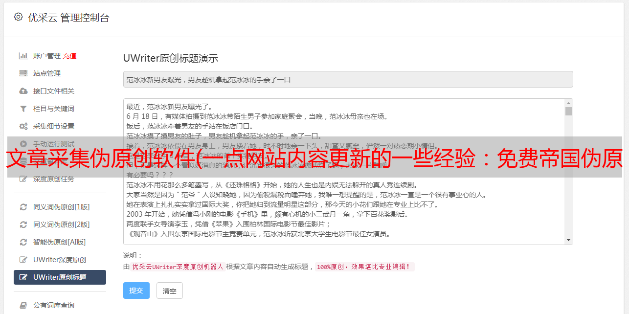 文章采集伪原创软件(一点网站内容更新的一些经验:免费帝国伪原创-可视化批量管理 )