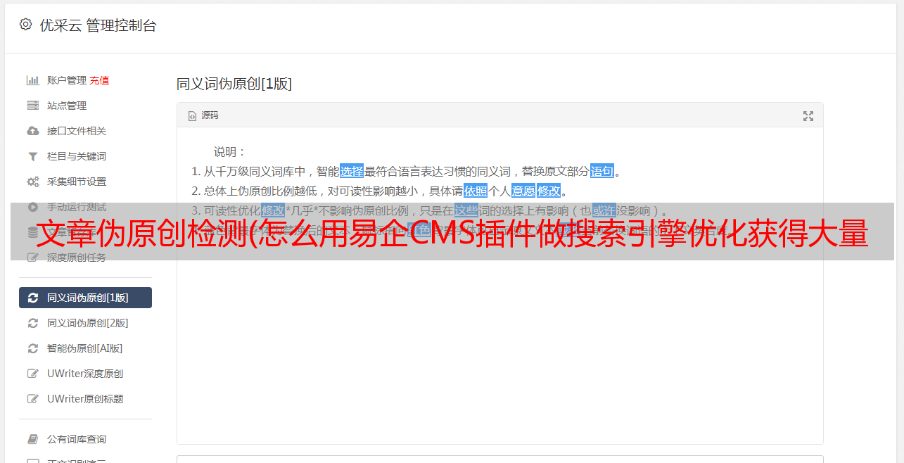 文章伪原创检测(怎么用易企CMS插件做搜索引擎优化获得大量收录以及关键词排名)