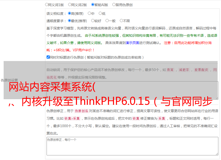网站内容采集系统( ,、内核升级至ThinkPHP6.0.15(与官网同步))