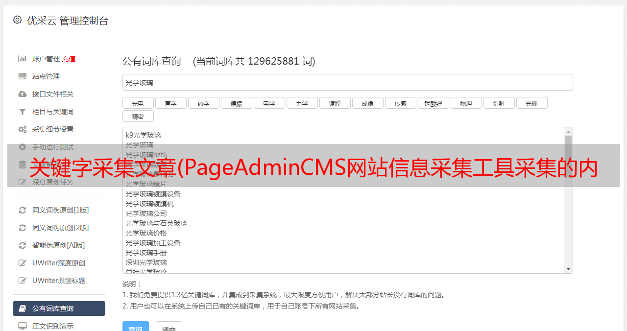 优采云 发布时间: 2022-02-27 16:15关键字采集文章(PageAdminCMS网站信息采集工具采集的内容介绍及注意事项)