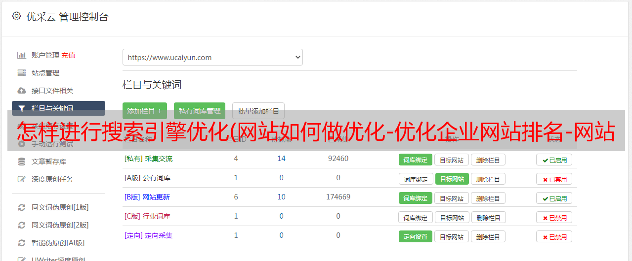 3、优化网站关键词:根据用户搜索行为来源分析,关键词可分为流量类型关键词、产品类型关键词@ >、产品类型长尾关键词等,在网站的首页、栏目页、内容页添加对应的关键词比较合理,更有利于网站 的排名和用户的搜索。关键词的布局可以根据站长工具进行分析,合理的安排在网站中。