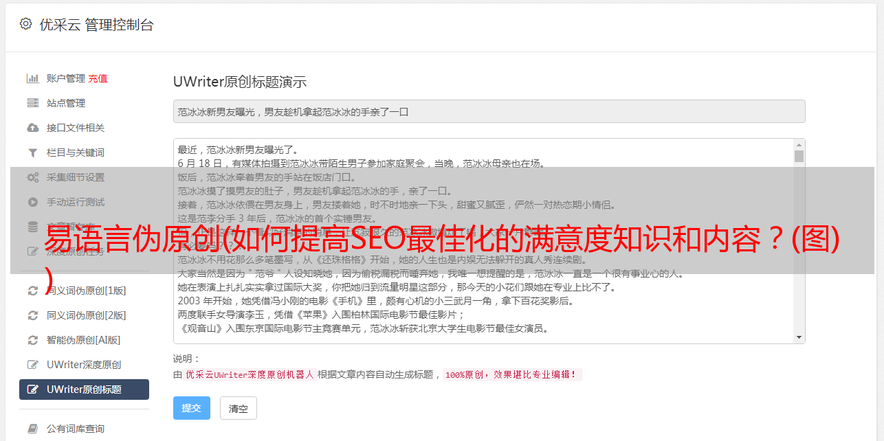 优采云 发布时间: 2022-02-28 16:11易语言伪原创(如何提高SEO最佳化的满意度知识和内容?(图)