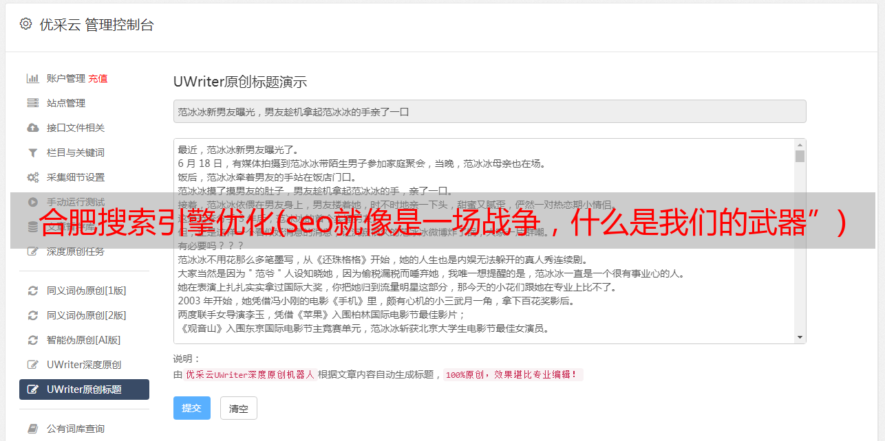 优采云 发布时间: 2022-02-28 21:24合肥搜索引擎优化(seo就像是一场战争,什么是我们的武器”)