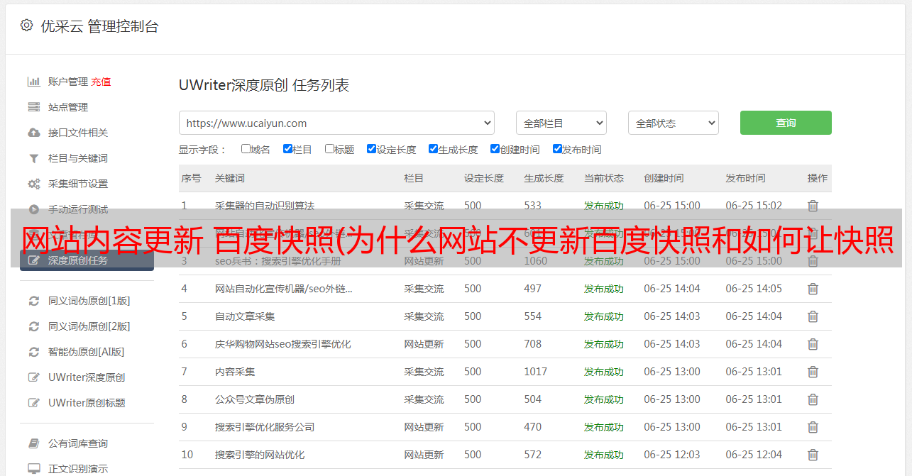 优采云 发布时间: 2022-03-01 08:07网站内容更新 百度快照(为什么网站不更新百度快照和如何让快照更新及时!)