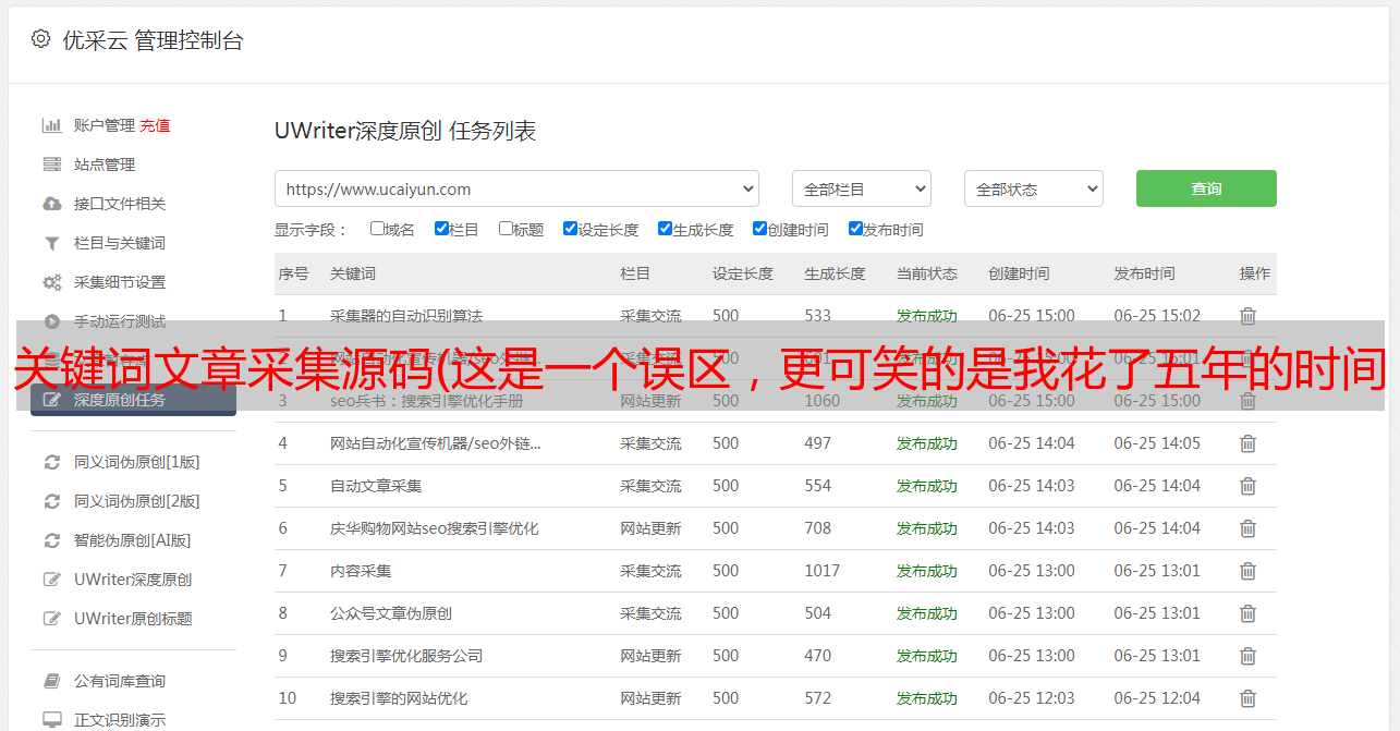 这些SEO小功能不仅提高了网站页面原创的度数,还间接提升了网站的收录排名。您可以通过软件工具上的监控管理直接查看文章采集的发布状态,不再需要每天登录网站后台查看。目前博主亲测软件是免费的,可以直接下载使用!