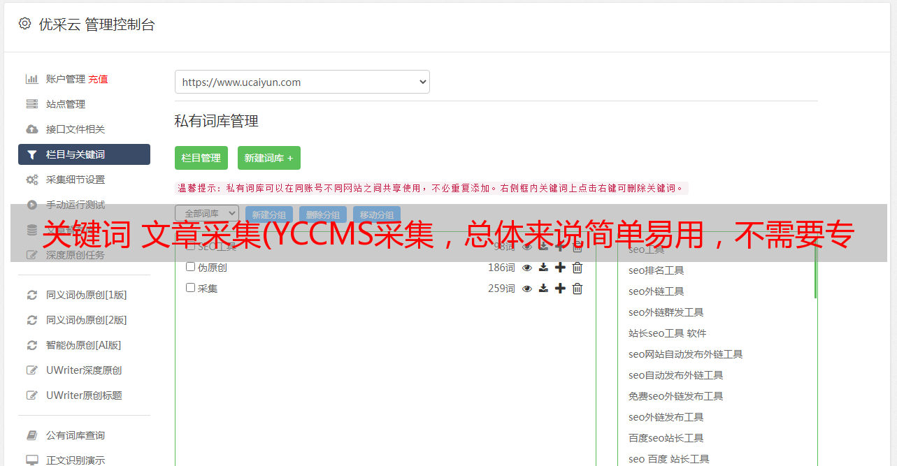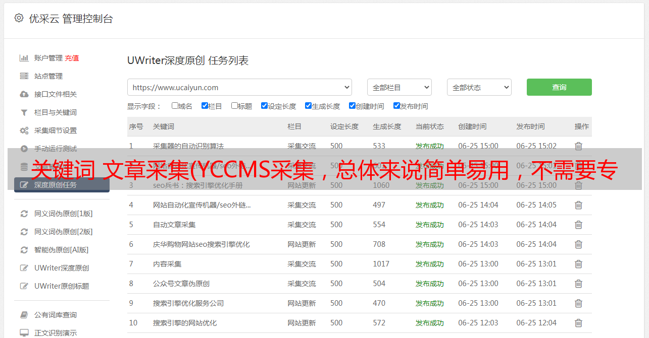 关键词 文章采集(YCCMS采集,总体来说简单易用,不需要专门学习,一分钟就能搞懂)